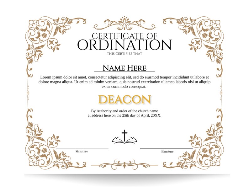 Deacon Ordination Certificates Template - Simplifying the intricate process, this editable template comes. You must become ordained before you can perform marriage. Deacon ordination certificate template there are few specific policies observed for deacon ordination which is given below. Whether for a special church ceremony or personal recognition, this. This document is a template for a deacon certificate of ordination.